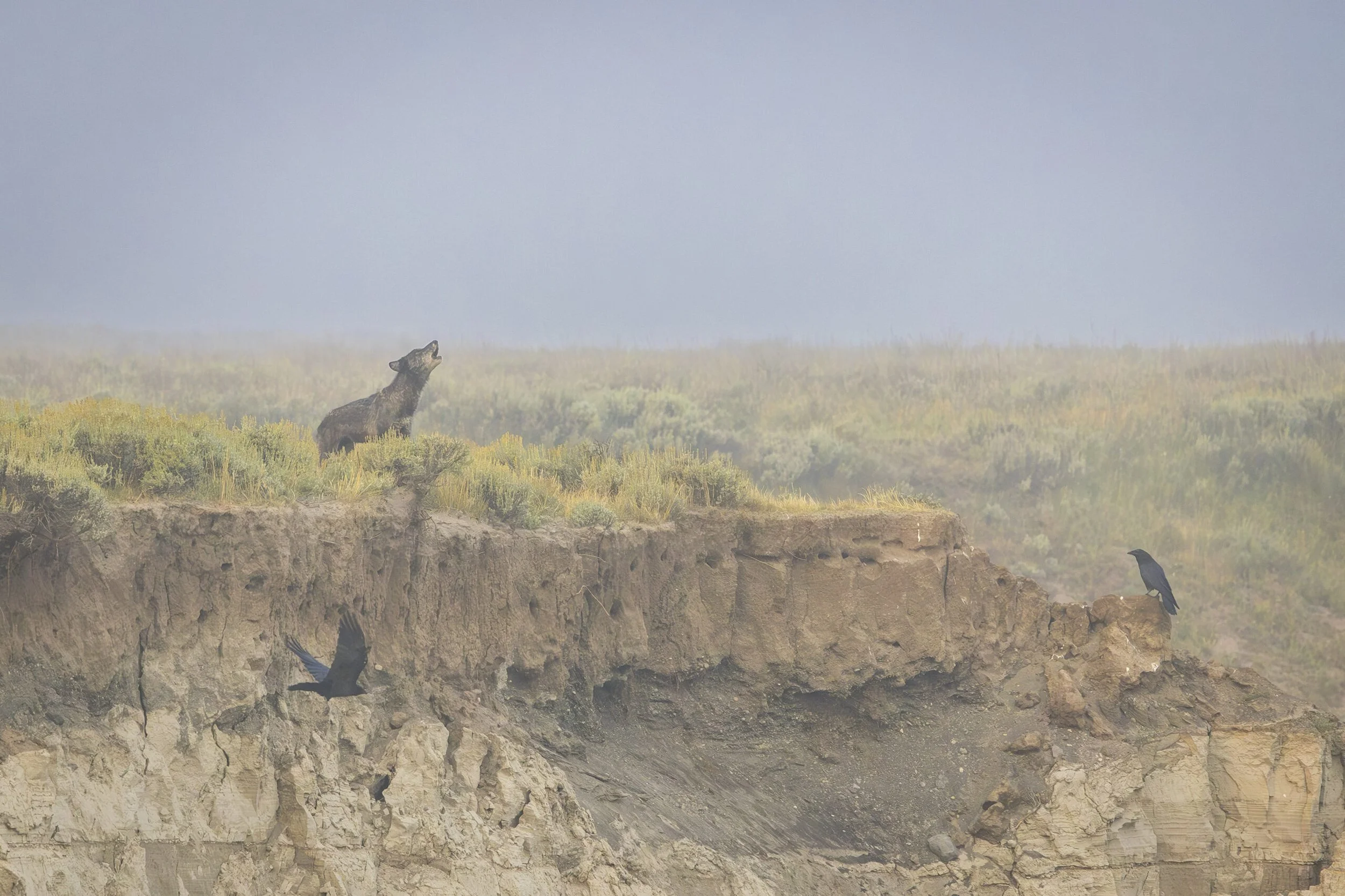 A wolf howls in wild Idaho. Ed Cannady photo.